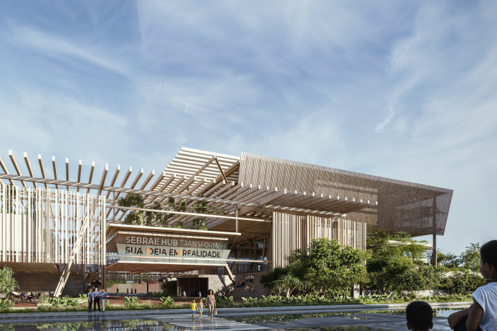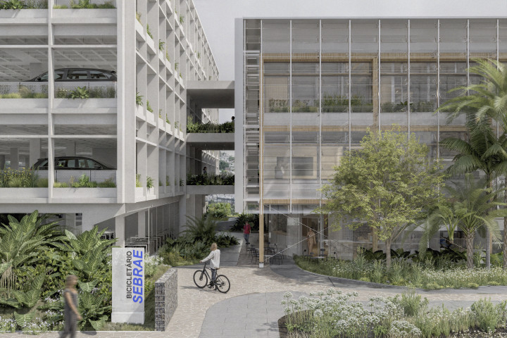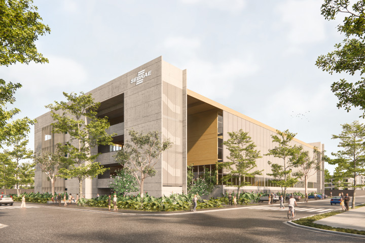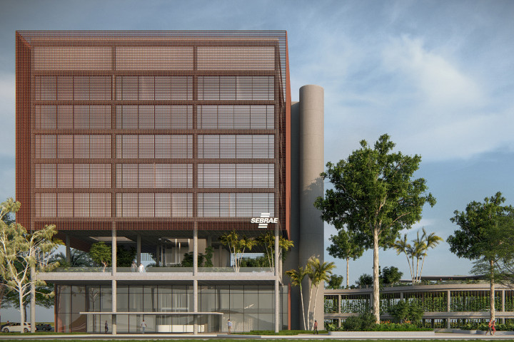 O partido arquitetônico apresentado desenvolve a ideia de fusão entre o natural e o construído, com grande qualidade estética e alta variedade espacial, explorando a dissolução dos limites entre exterior e interior a partir de soluções de construção simples, conexões diretas com o tecido urbano e um desenvolvimento eficiente de suas demandas de uso — no presente e no futuro. Parte-se da premissa de que um equipamento de uso coletivo, como a Nova Sede do Sebrae, deve assumir um papel protagonista na construção de espaços qualificados que funcionem como referências para o cotidiano e para as boas práticas arquitetônicas. Dessa forma, o projeto se desdobra a partir das seguintes ações: