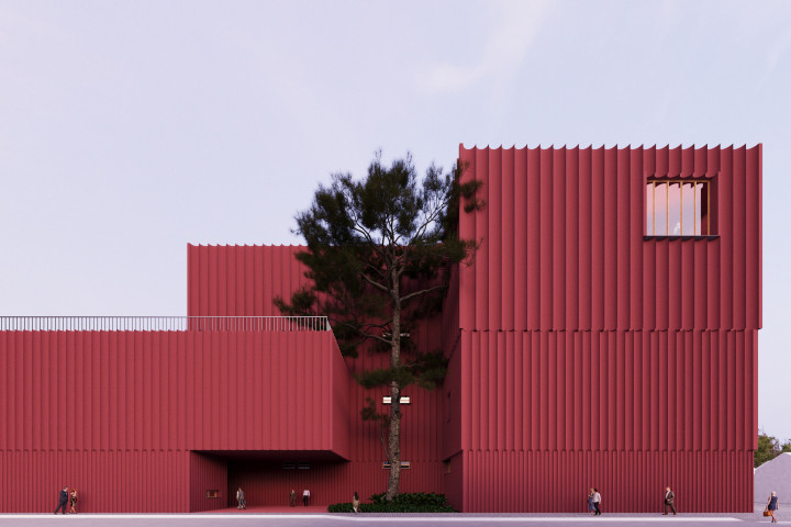 Materialmente, sua tectônica estabelece vínculo definitivo com a pré-existência da antiga sede. Isto, pois, a presença material do pavimento se dá por placas modulares de concreto ciclópico pigmentado, moldadas no canteiro de forma serial a partir dos resíduos da estrutura demolida. A reorganização dessa matéria que seria, em tese, descartada, concilia o novo e a precedência.