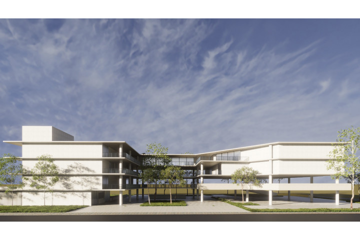 A composição dos edifícios no terreno baseim-se na idéia de criar um sombreamento matinal para a escola existente, e também criar sombras em toda a área aberta do complexo no período da tarde. A